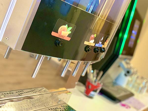 Všechny džusy jsou s podílem ovocné složky bez přidaného cukru. Nápoje jsou chlazeny na optimální teplotu.