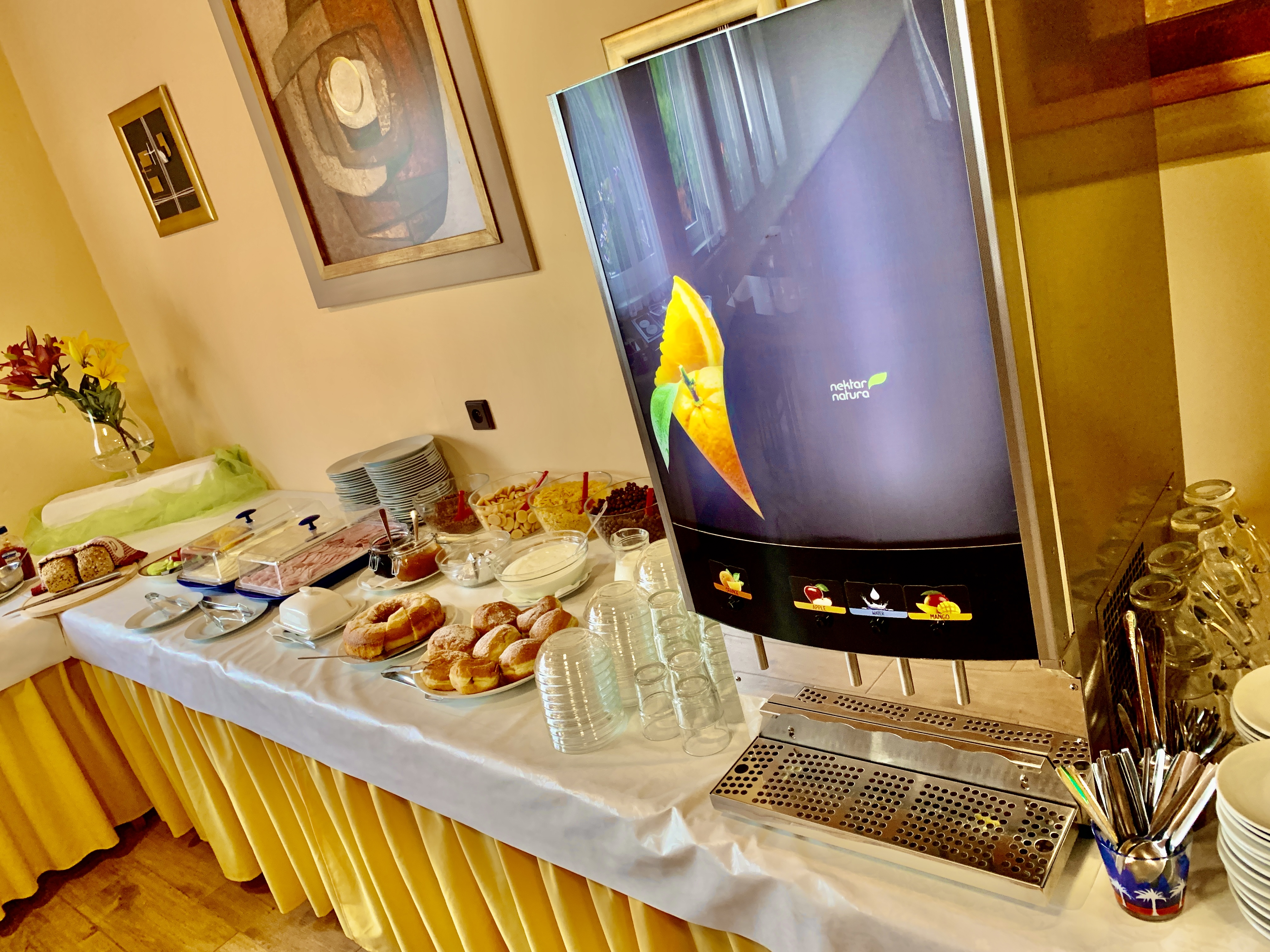 Snídaně připravujeme formou teplého i studeného bufetu. K dispozici jsou automaty na kávu i na ovocné džusy od firmy NEKTAR NATURA. Vše je připraveno k neomezené konzumaci nápojů v rámci snídaní.